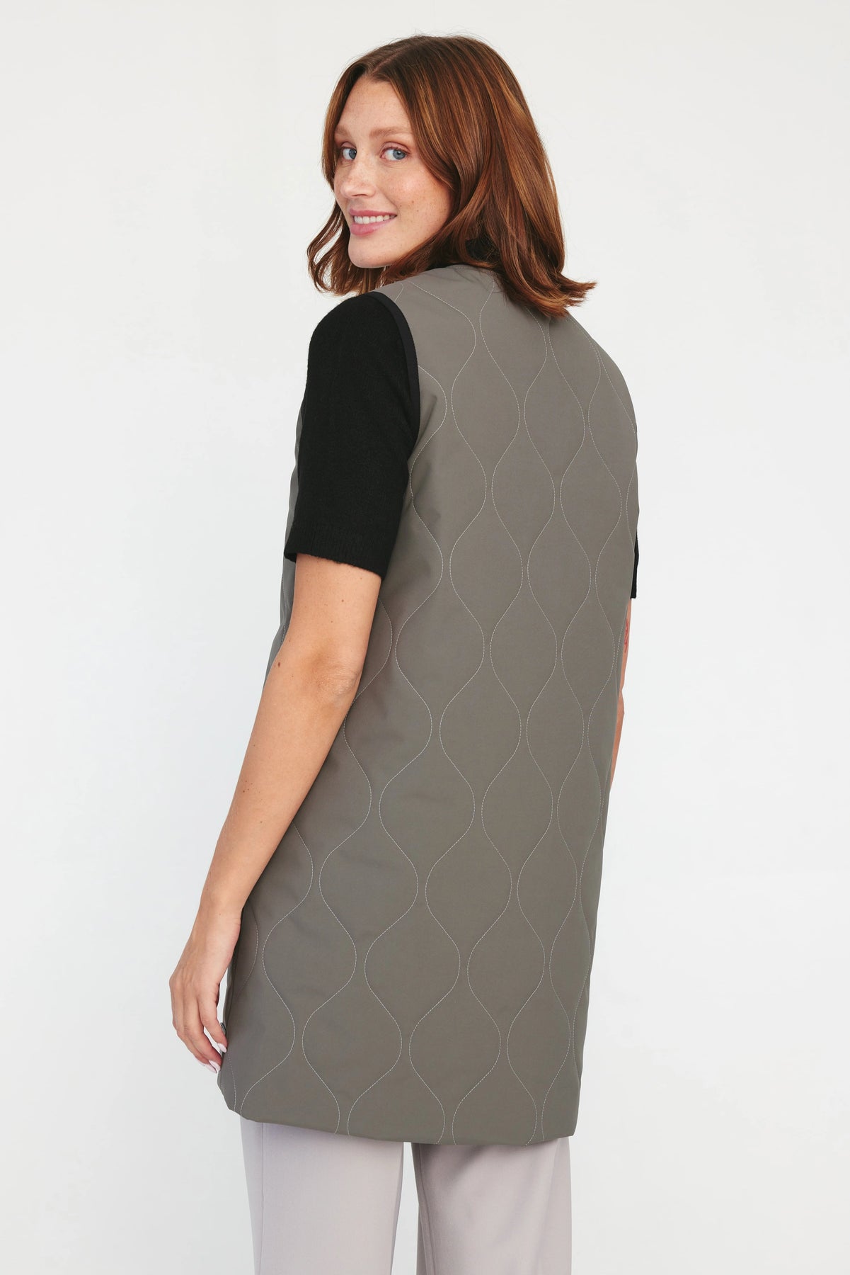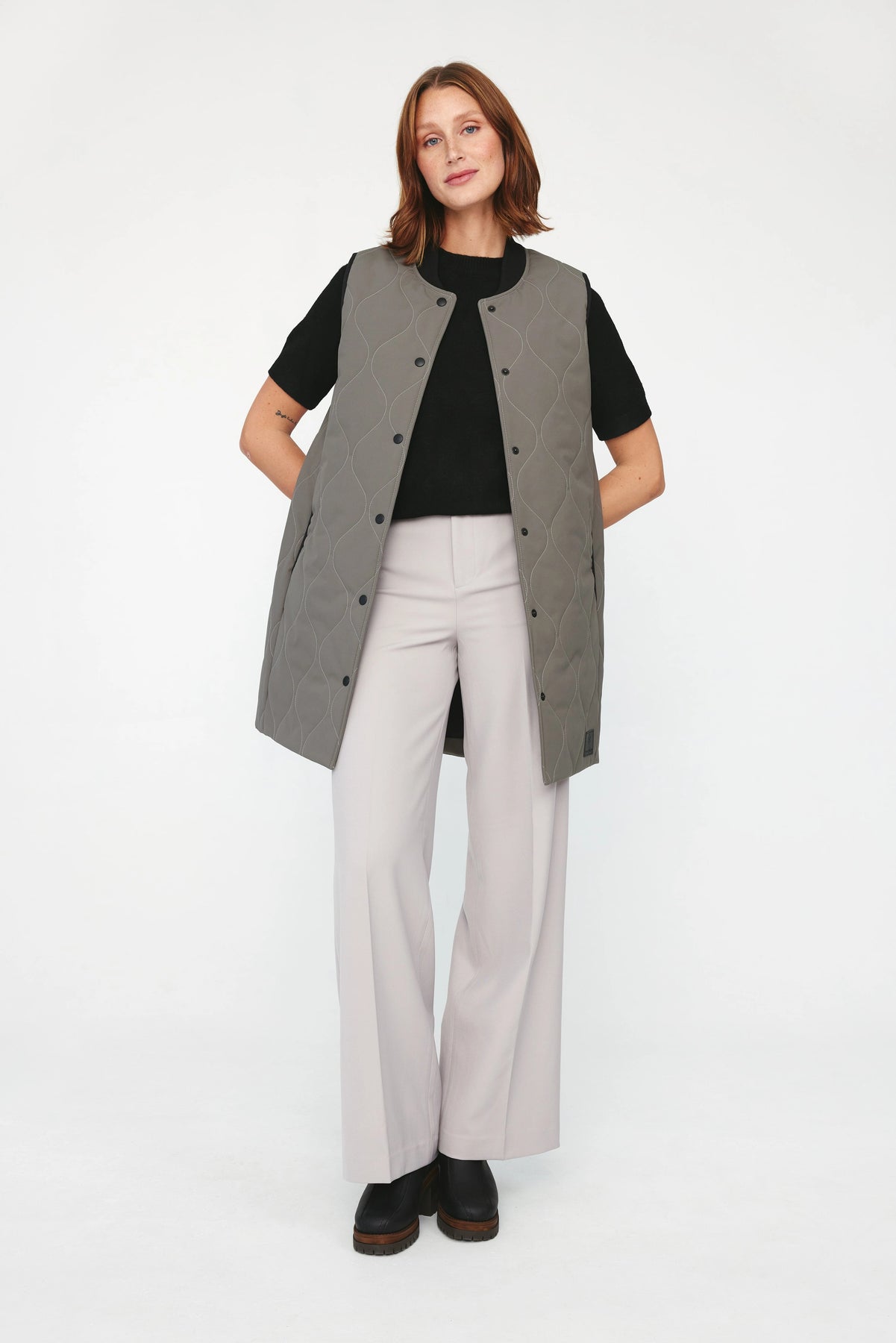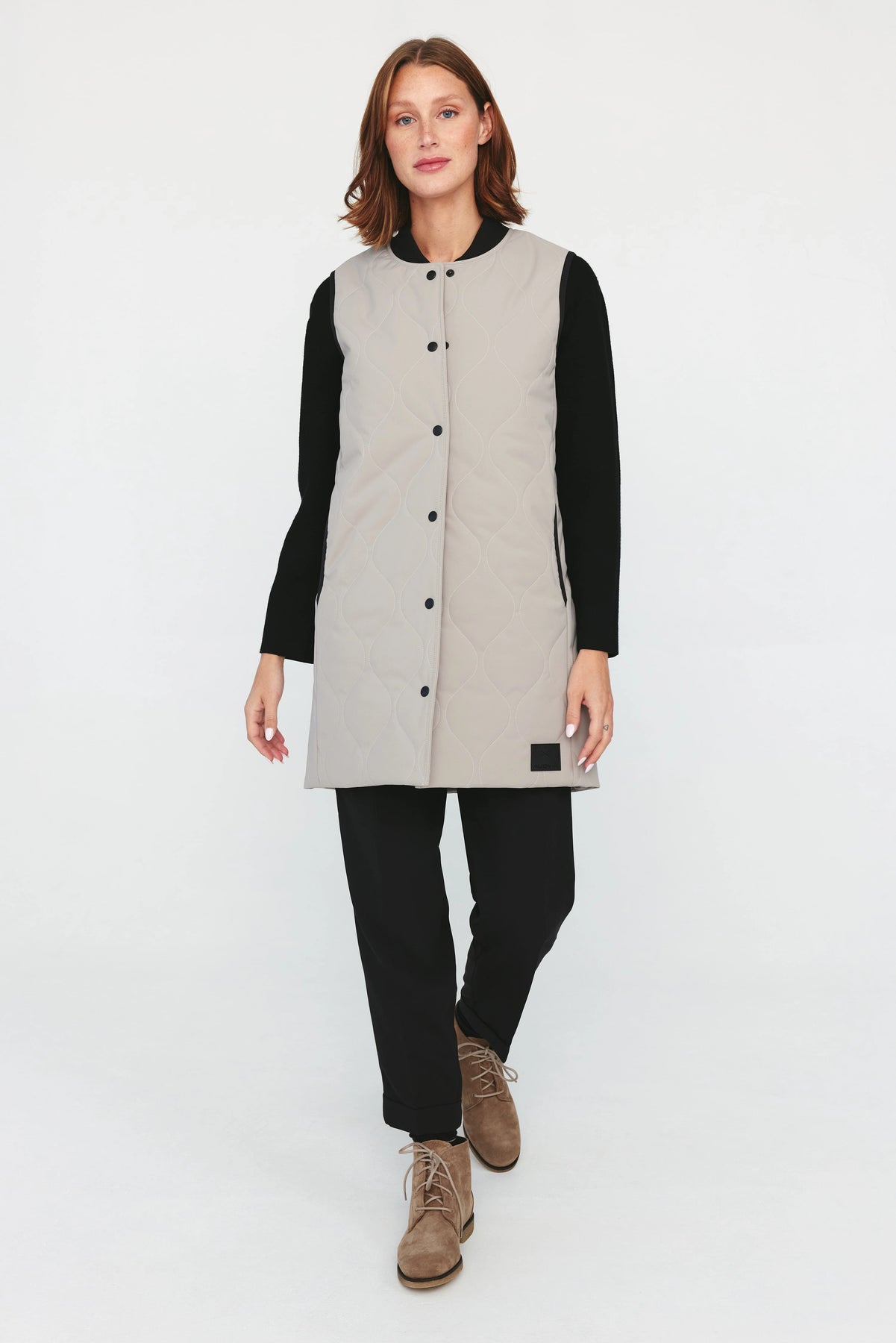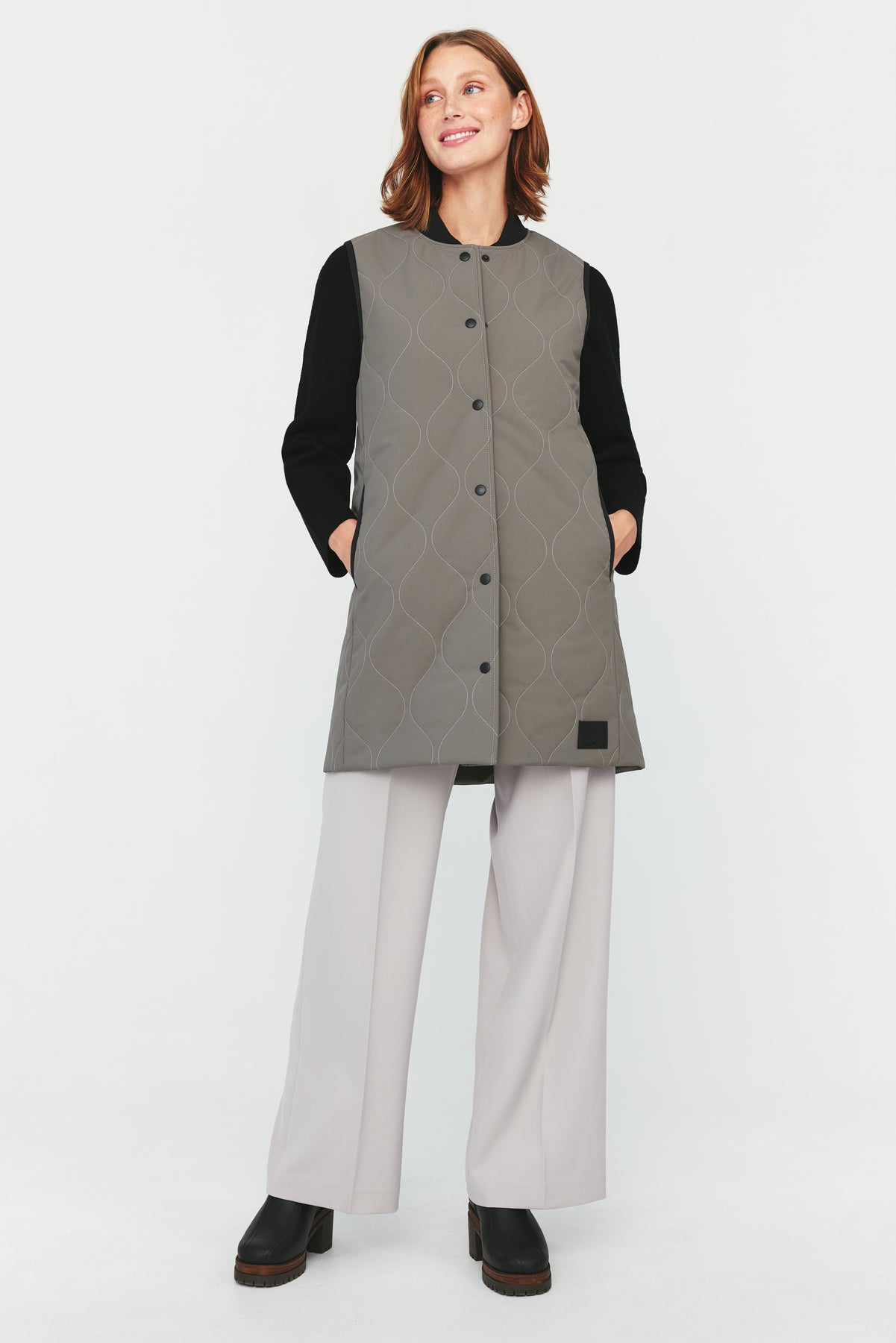 Préparez-vous pour les temps plus frais avec notre toute nouvelle veste sans manches matelassée en Primaloft.  On adore sa longueur mi-cuisse alliant parfaitement style, confort et fonctionnalité. Cette pièce essentielle, au design épuré et moderne, vous enveloppera de chaleur tout en offrant une liberté de mouvement idéale pour vos journées chargées.