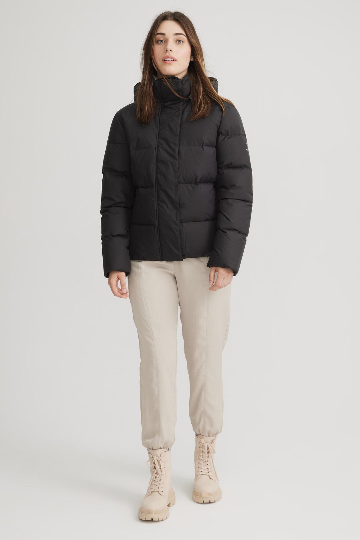 Ce manteau a été fièrement conçue au Canada et fabriquée en Asie à partir de tissus recyclés issus de filets de pêche recyclés.