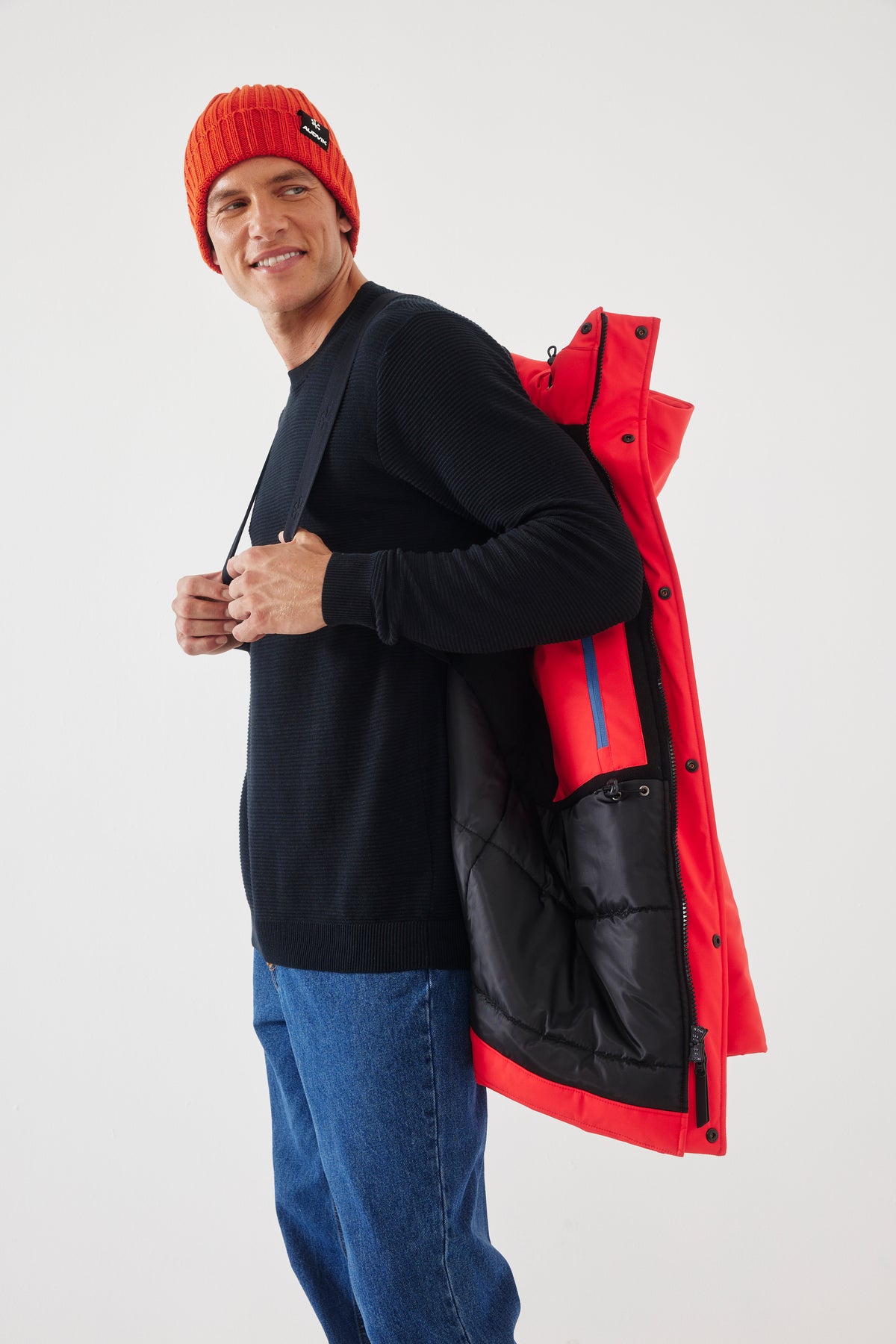 Explorez notre manteau d'expédition, conçu pour vous permettre de braver les conditions météorologiques les plus extrêmes avec style et fonctionnalité. À l'intérieur, la doublure en polaire vous enveloppe d'une chaleur supplémentaire, faisant de ce manteau le modèle le plus chaud de notre collection.
